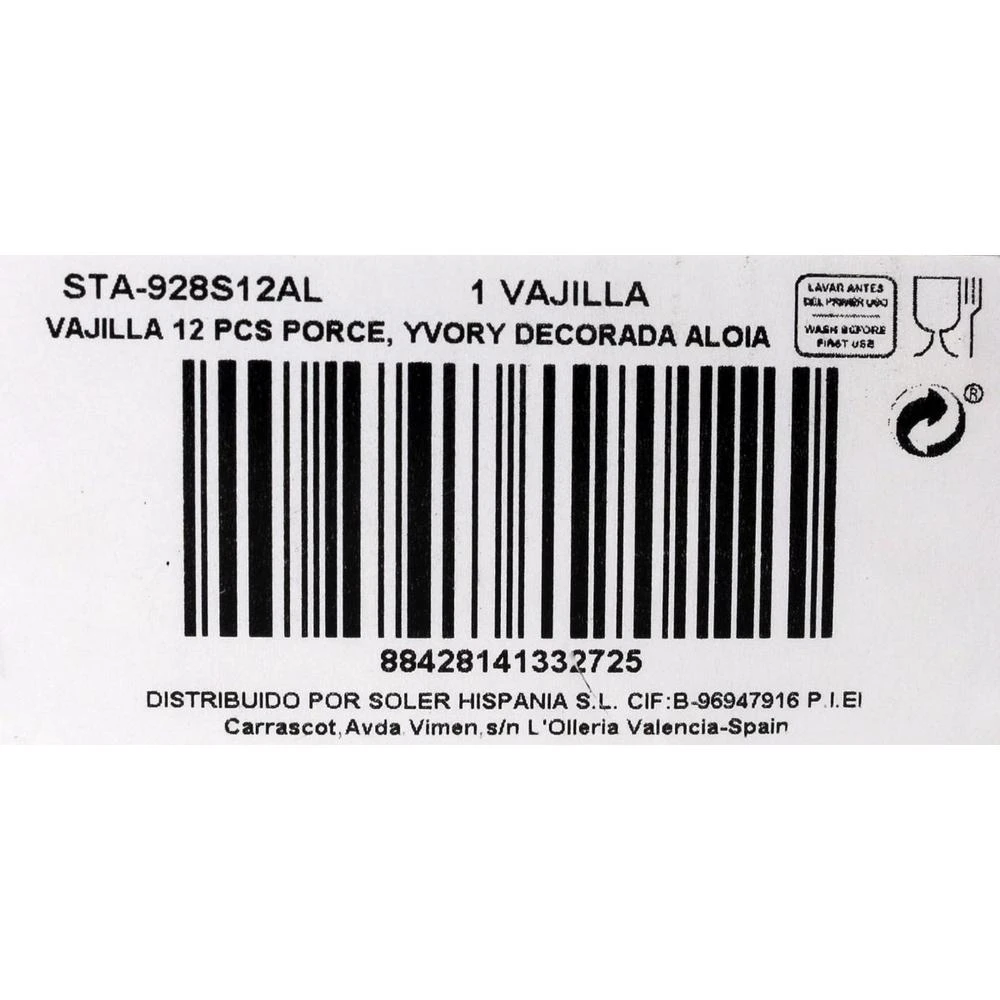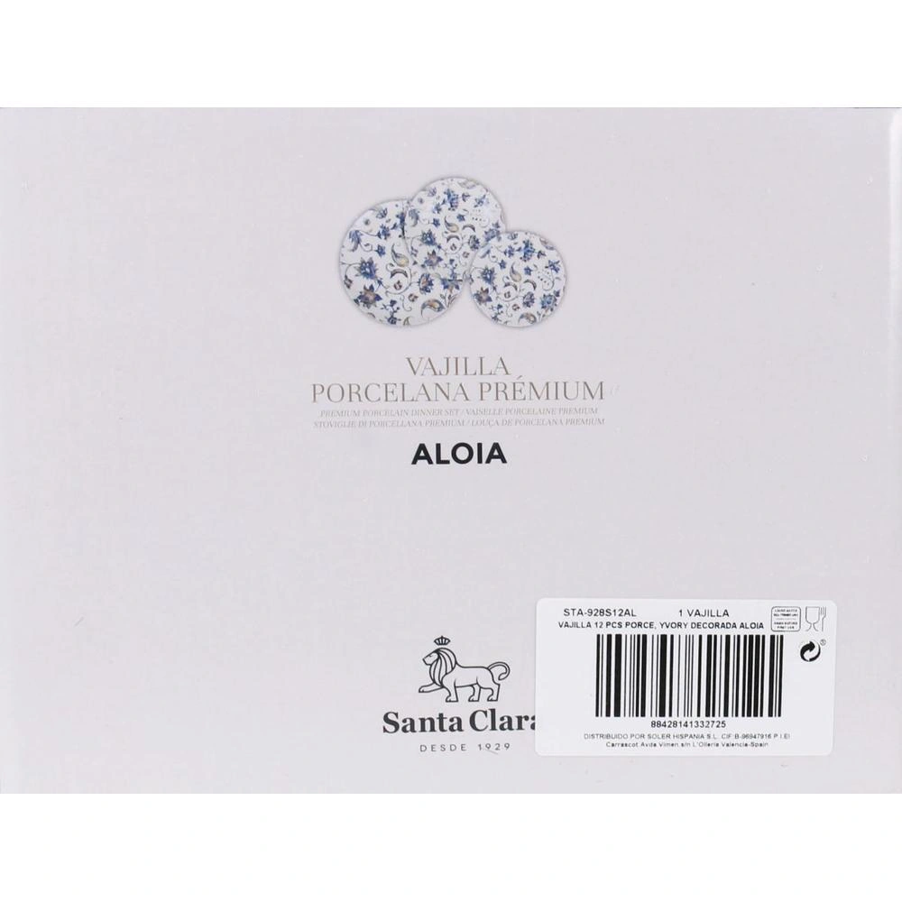 Vajilla 12P Porcelana Yvory Decorada Alo Porcelana