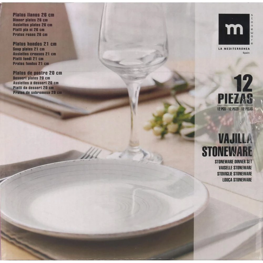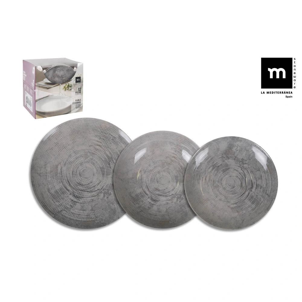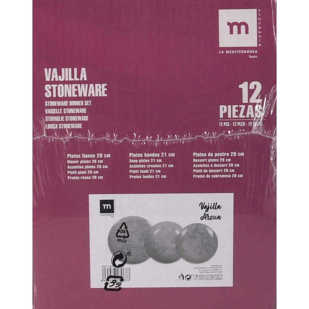 Vajilla 12Pcs Arzua Monaco Gris Brillo Porcelana