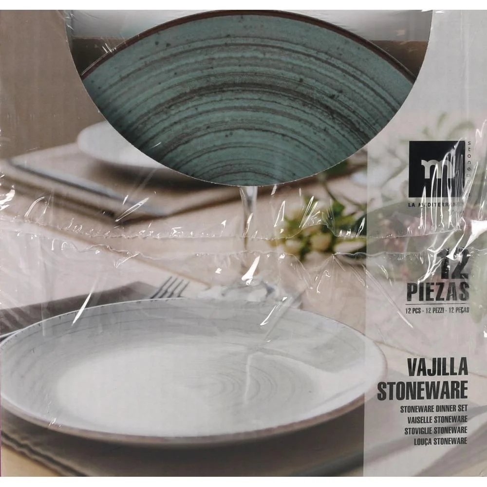 Vajilla 12Pcs Miño Monaco Turquesa Brillo Porcelana