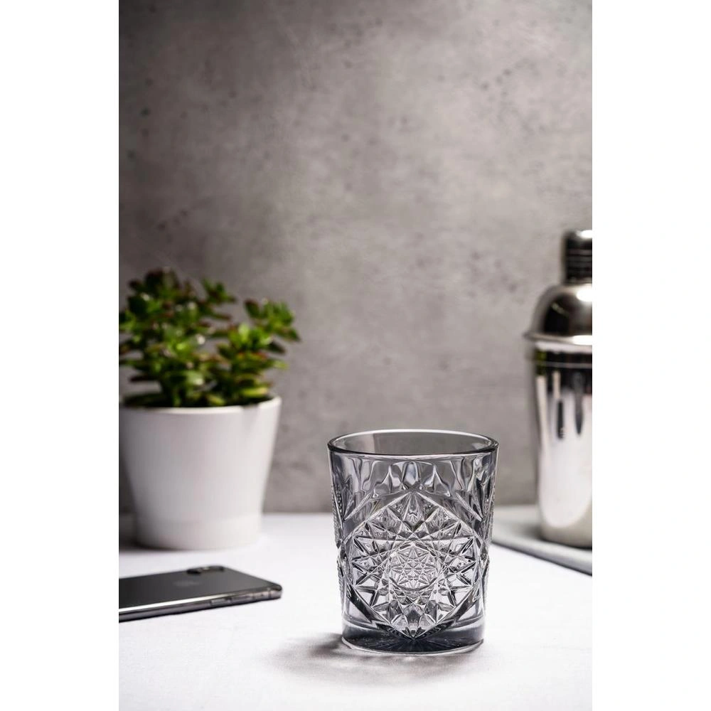 Fabricado con materiales de alta calidad, el vaso Hobstar gris de 35cl es resistente y duradero, lo que lo hace perfecto para un uso constante en entornos de hostelería. Su diseño elegante y moderno lo convierte en un elemento imprescindible para cualquier bar o evento que busque ofrecer una experiencia de cóctel única y memorable. Disponible para la venta online, este vaso es una excelente opción para aquellos que buscan añadir un toque de sofisticación a su servicio de cócteles.